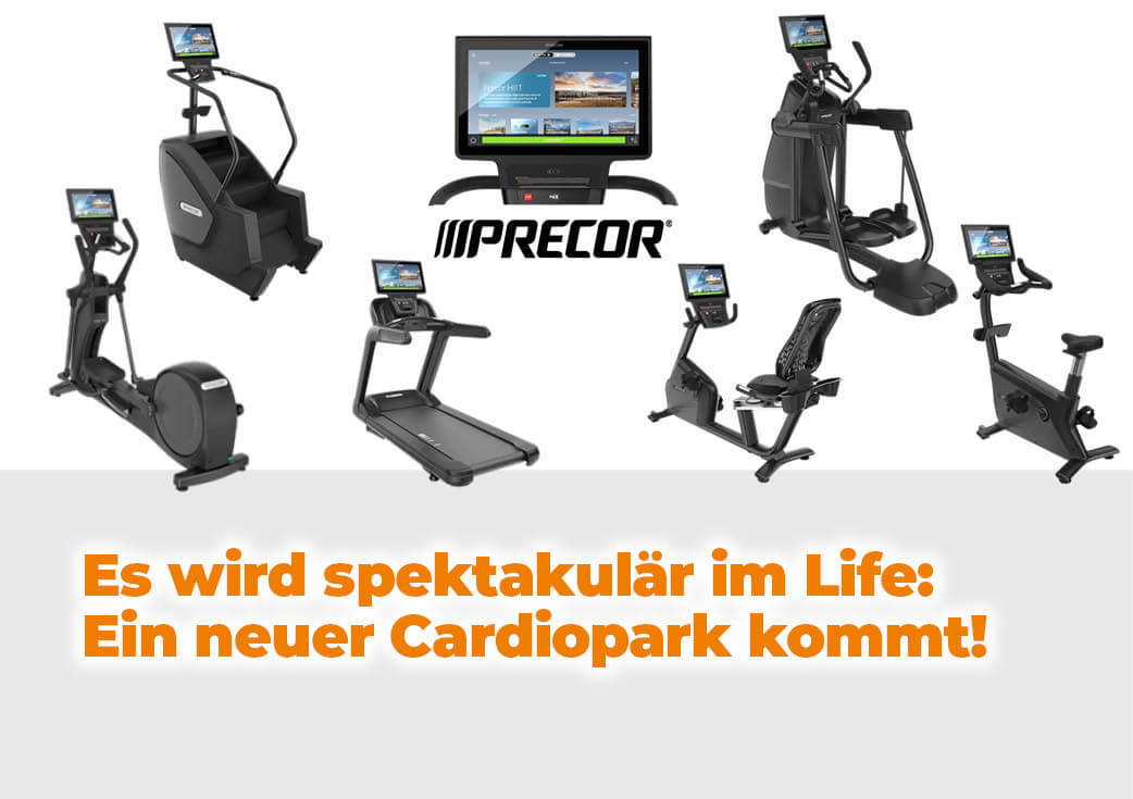 Zum 20. Geburtstag beschenkt sich der Life Fitnessclub und seine Mitglieder mit dem umfangreichsten Geräteupdate seit über einem Jahrzehnt! Ende Mai verwandelt sich unser aktueller Cardiobereich in das nächste Highlight in unserem Studio. Ein kompletter Austausch aller Geräte steht an und wir freuen uns auf die hochmodernen Geräte von Precor der neuesten Generation. Neueste Technik für echtes WOW und Motivation.